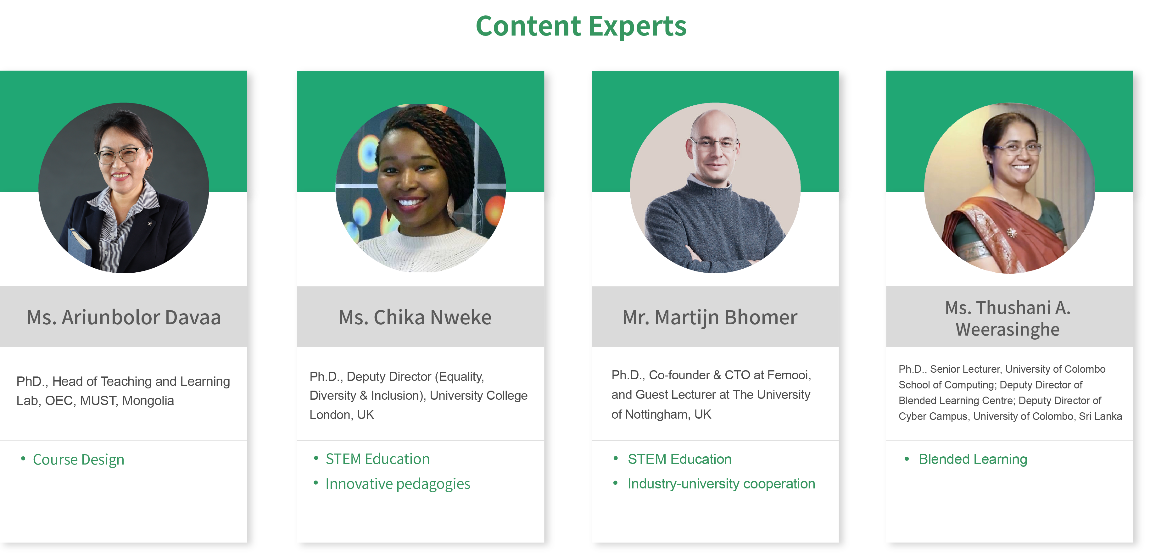 ·Ms. Ariunbolor Davaa, PhD., Head of Teaching and Learning Lab, OEC, MUST, Mongolia.