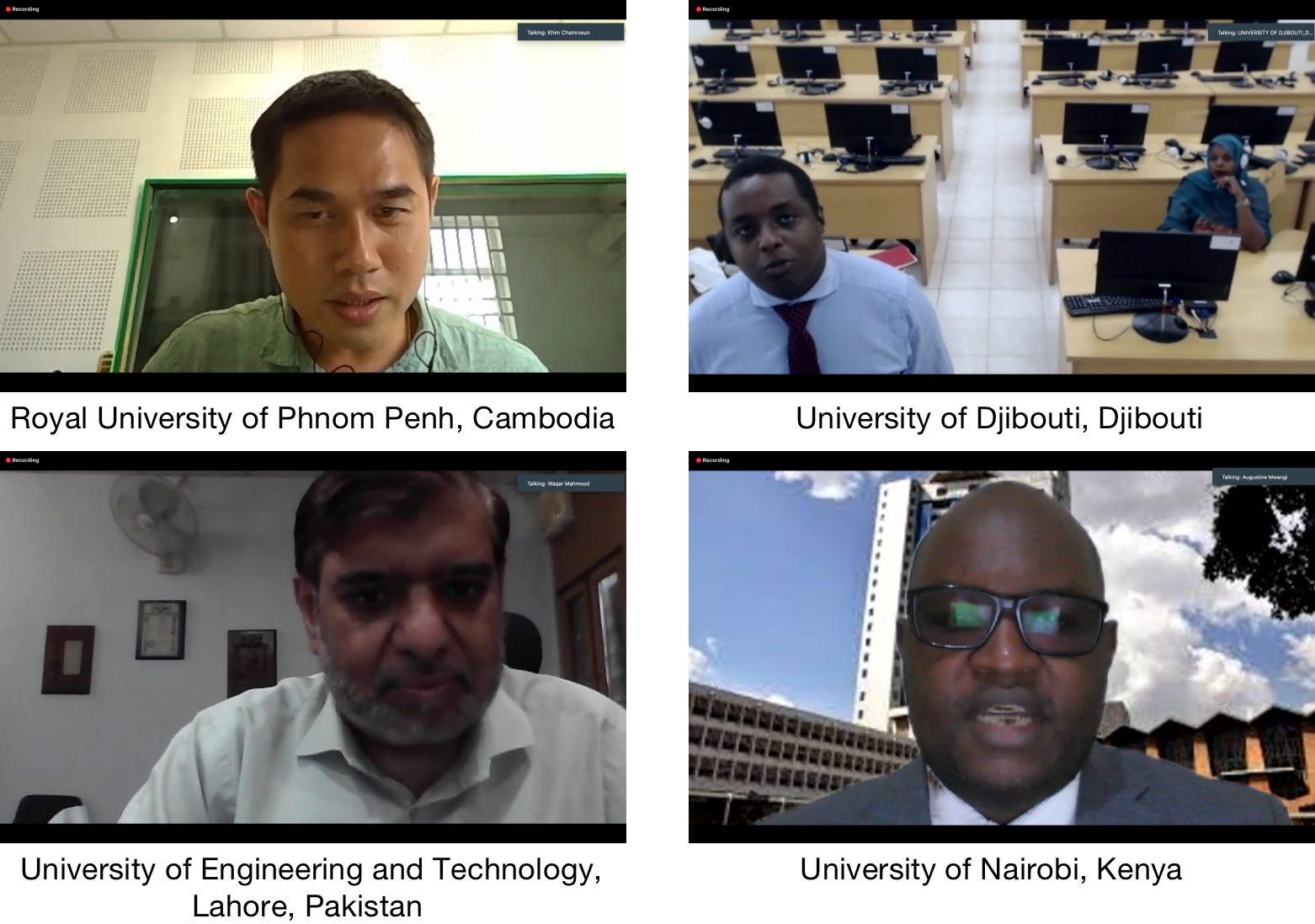 In Royal University of Phnom Penh, the launch and training of Weidong Smart Classroom was finished in February. During the COVID-19 crisis, departments and HEIs including the Ministry of Education, Youth and Sport (MoEYS) used the smart classroom to record courses. In the University of Djibouti, the teachers' and students' reaction to the smart classroom is enthusiastic and intuitive. The potential utilisation of the smart classroom includes untapped potential, other academic disciplines, teleconferencing, MOOCs, and interuniversity cooperation. As the first-ever partner HEI that has the smart classroom launched, the University of Engineering and Technology, Lahore, Pakistan, proposed a "Smart Classroom: One Year Plan", with the target of providing 100 university degree courses for undergraduate/ graduate students, organizing workshops on disruptive technologies for 500 students and professionals, etc. The University of Nairobi, Kenya, plans to develop a policy to require students to have access to a laptop on joining the University for online learning "Bring Your Own Device", and valuate the needs and requirements for staff and students to support continuous online learning and teaching beyond Covid-19.