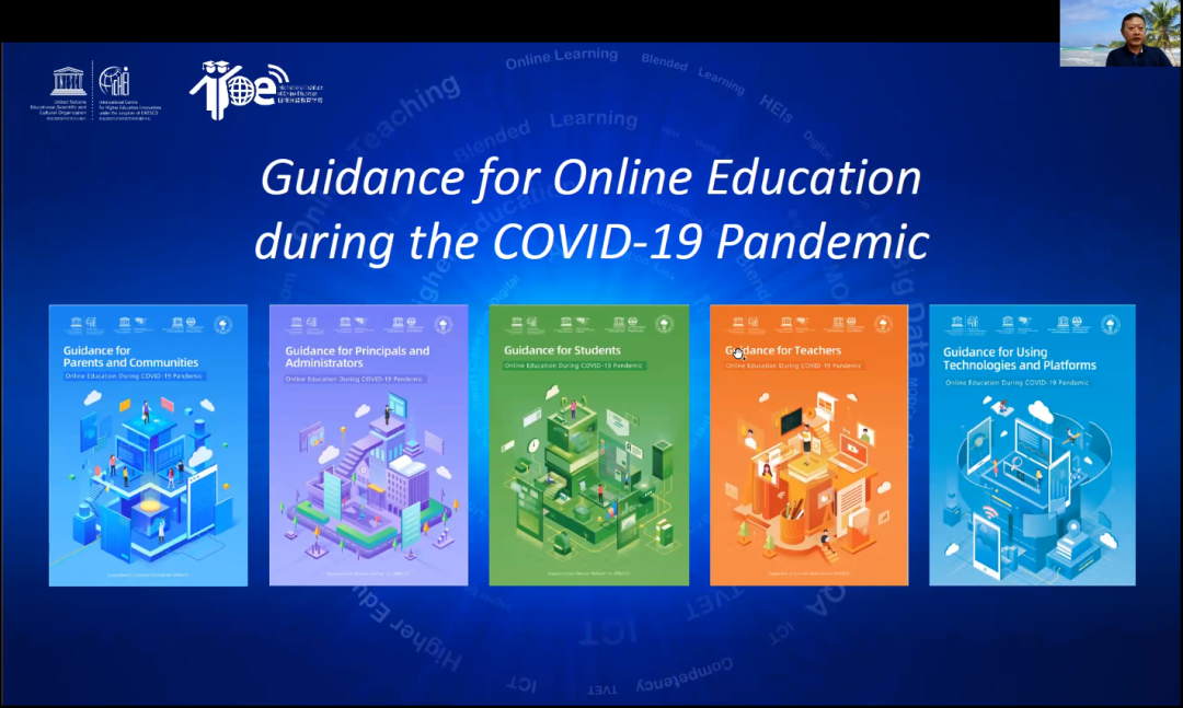 In the webinar, Mr. ZHAO Jianhua, Senior Expert of UNESCO-ICHEI, Deputy Director of Center for Higher Education Research of SUSTech, showed Guidance for Online Education during the COVID-19 Pandemic to the guests. When touching upon the contents and features of each volume, he also said that these books would provide targeted guidance and help to different stakeholders in online teaching, including students, teachers, technology provider, platform operator, parents, communities, presidents and managers of institutions.