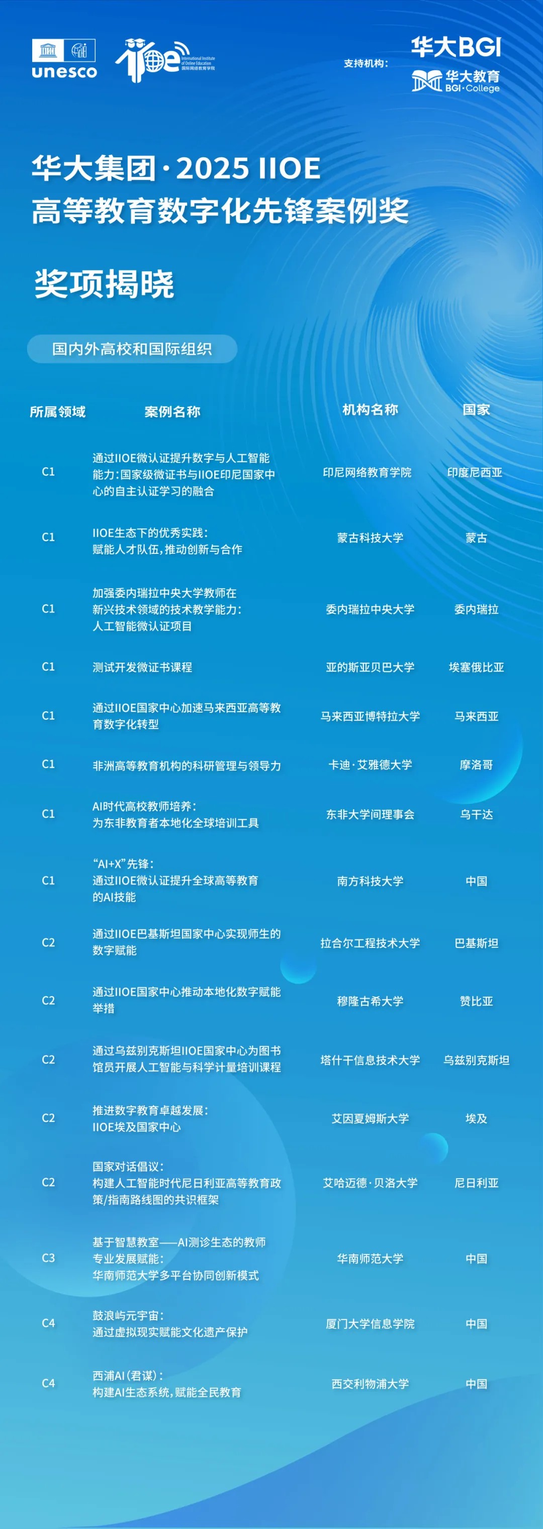 华大集团·2025 IIOE高等教育数字化先锋案例奖揭晓,颁奖仪式将于新加坡举行