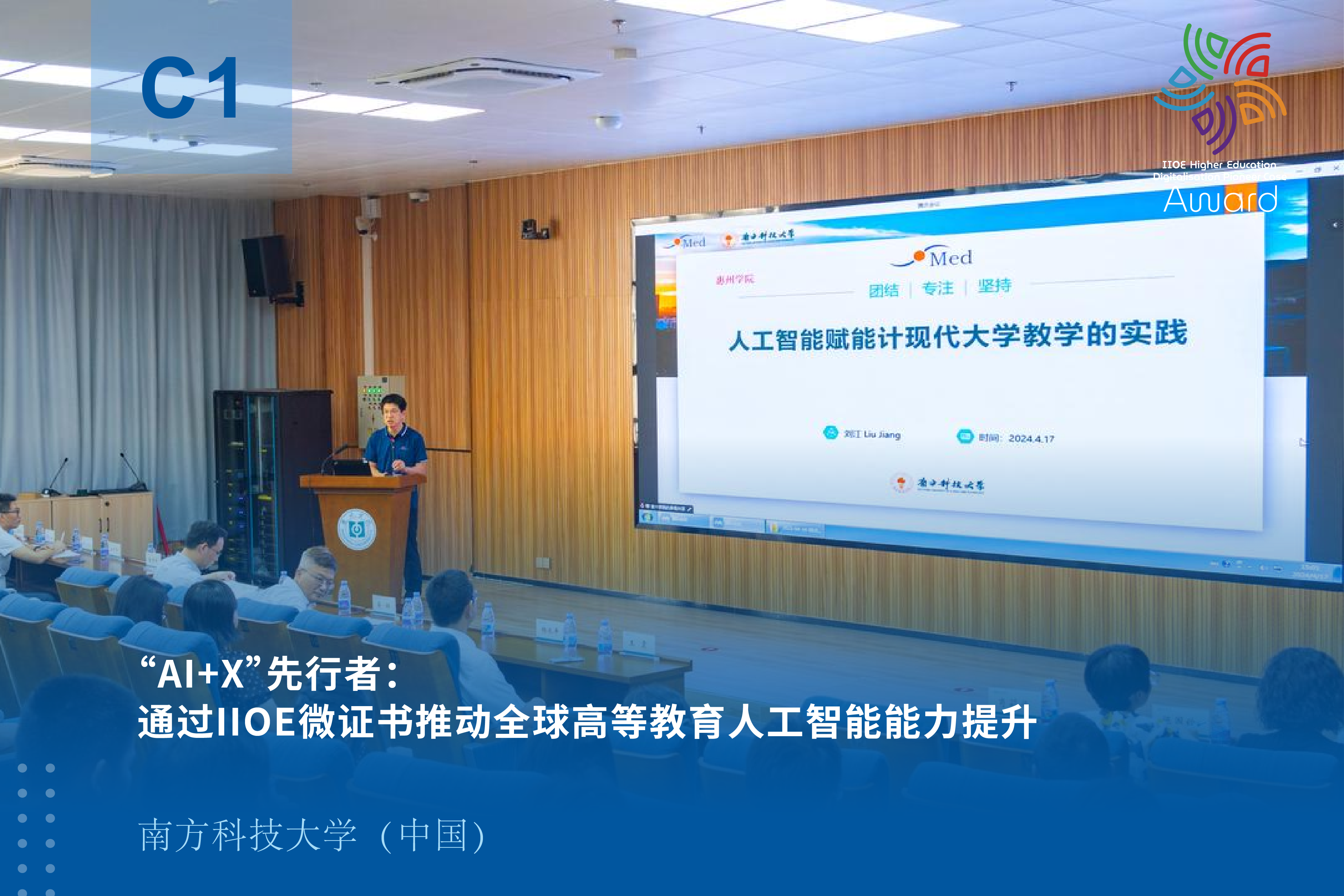南方科技大学团队的IIOE微证书项目依托IIOE平台开发“AI+”系列课程,以实用性、跨学科性与可及性为核心,涵盖教育与医学等领域,帮助学习者将AI从理论理解应用到实际场景。课程采用循序渐进的实践导向设计,并融入伦理思考,不仅提升了高等教育工作者的技术能力,也增强了其责任意识。此外,借助多语言资源与数字化课件,该项目实现了对全球高等教育工作者的覆盖,包括资源相对匮乏地区。