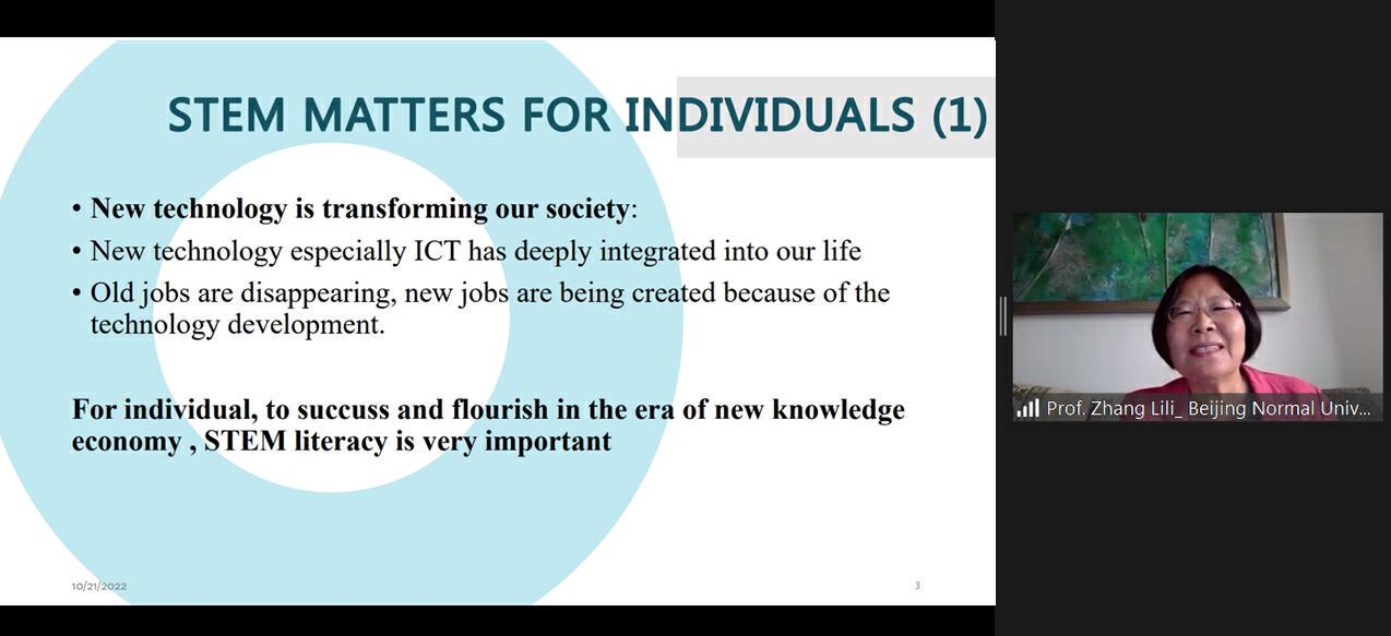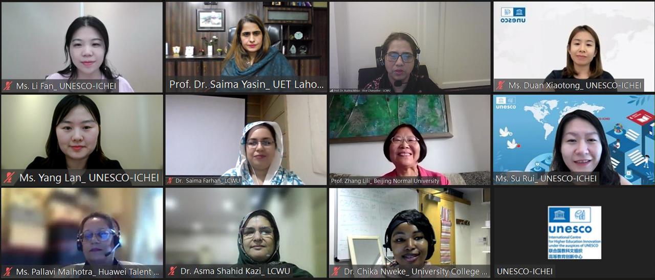 2022年10月21日,联合国教科文组织高等教育创新中心(以下简称“创新中心”)国际网络教育学院 (IIOE) 面向全球学员举办了“构建平等、包容的高等教育:STEM女性领导力”为主题的网络研讨会。来自55个国家的338名高等教育机构教师,学者,信息技术领域高级管理人员等参与了此次会议。现场嘉宾就STEM领域女性学术和职业发展问题展开了热烈讨论。 研讨会视频回放: 该网络研讨会分为两部分:1) STEM领域女性领导者故事分享 (Storytelling);2) 拉合尔女子大学作为南亚领先的女子高等教育机构展示STEM人才培养实践案例 (Case-study Presentation)。本次研讨会邀请到了北京师范大学中国民族教育与多元文化研究中心副主任张莉莉教授致开幕词,并概述女性在STEM领域所面临的发展和挑战,以及中国高校、组织和个人对支持女性所作出的努力。 在女性领导者经验分享环节,华为西欧ICT学院总监Pallavi Malhotra女士讲述了她多年来从高级工程师到教育工作者和女性赋能者的角色转变。她还提出,希望利用女性榜样的力量来鼓励更多的女孩参与到STEM领域的学习和工作,