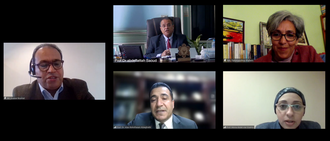 来自艾因夏姆斯大学(埃及)、卡迪艾雅德大学(摩洛哥)和伊拉克高等教育和科学研究部的嘉宾发言。他们分别就人工智能应用于医学教育,国际合作促进变革性教学法和教师专业发展,在线和混合式学习的质量保证、监测与评估,以及支持全国在线学习的 "智慧教室 "项目分享了各自国家和院校的经验。