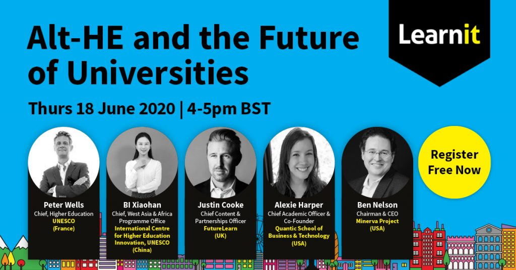 On June 18th, Alternative Higher Education the Future of Universities global dialogue was held online. This virtual dialogue was organized by Learnit, convened higher education players who have upended one or more parts of the traditional model. UNESCO-ICHEI was invited to attend this dialogue for its devotion to promoting ICT-driven higher education innovation in developing countries.