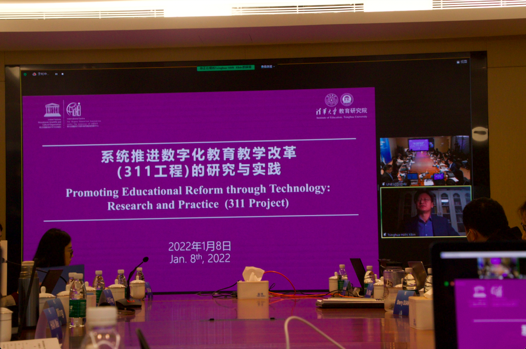 Also present at this meeting are LI Ming, Director of ICHEI, HAN Wei, Executive Deputy Director of ICHEI, and WANG Guobin, Deputy Director of ICHEI. At the meeting, CHENG Jiangang, Director of Institute of Higher Education Digital Transformation of ICHEI, and HAN Xibin, Consultant of Education Technology of ICHEI, Chief Director, Professor of Institute of Education (IOE) Tsinghua University and all colleagues from ICHEI, gave special reports respectively.