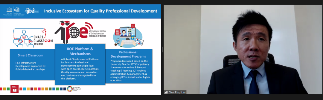 Peter Wells, Chief in Higher Education of UNESCO Headquarters, emphasised the importance of increasing recognition for online education, strengthening North-South cooperation, carrying out ICT-related training, as well as comprehensively improving teachers' ICT practical application capability.