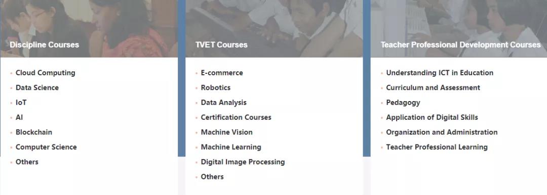 So far, more than 130 courses in Chinese, English and French have been brought together on the IIOE platform. The courses cover cloud computing, big data, IoT, AI, block chain, intelligent robotics, digital image processing, machine recognition vision, e-commerce, enterprise certification, application of ICT in teaching and other fields. The first batch of courses mainly come from Chinese universities and enterprises. In the future, the platform will bring together more courses from partner HEIs to create an ecosystem of joint contribution and shared benefits, integrating and producing more locally tailored courses.